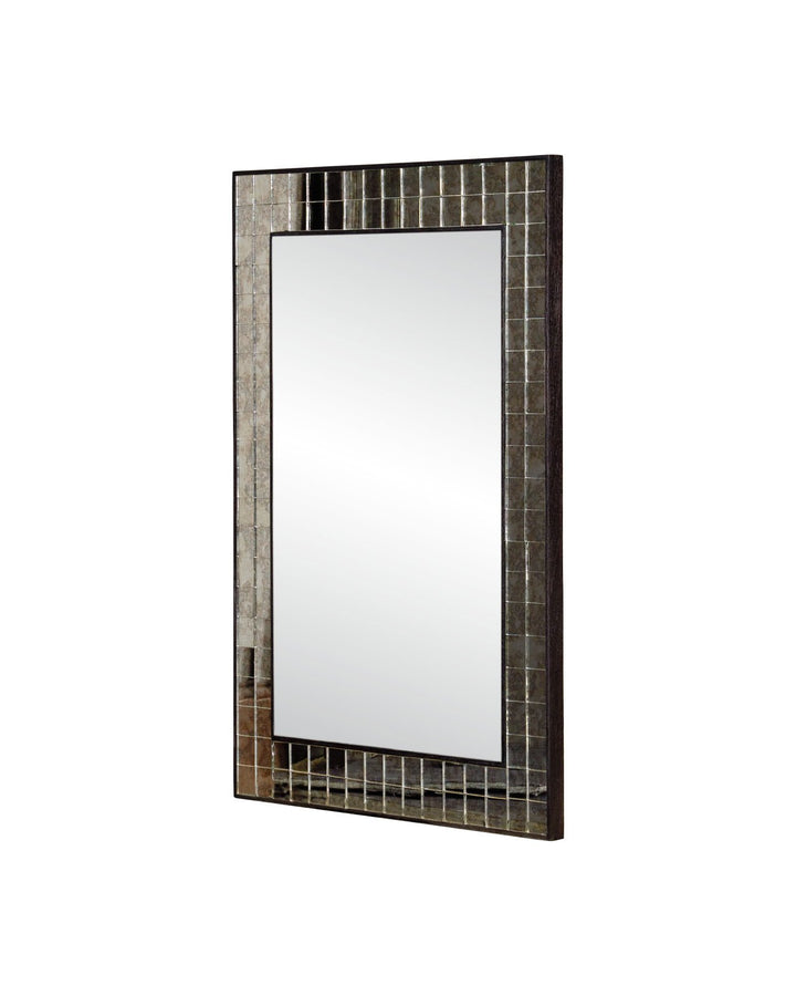 The Mosaico Rectangular Mirror combines elegance and craftsmanship, making it a standout piece for any room. This eye-catching design features a central beveled mirror encircled by antique mirror tiles. Each tile is carefully hand-placed into a sleek, black-painted mango wood frame, creating a rich and layered look. With its ivory color and stunning craftsmanship, this mirror offers a touch of sophistication to your home decor. Whether you place it in your hallway, living room, or bedroom, it will enhance the aesthetics of any space.