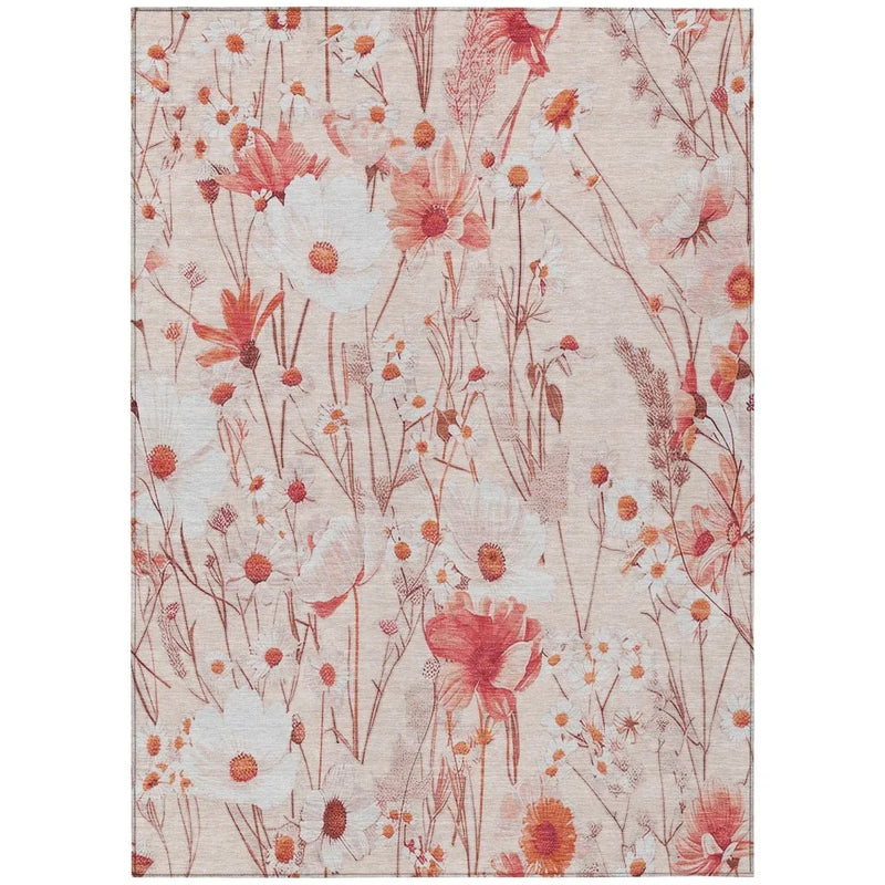 Nafeza Orange Washable Rug UV Stabilized Floral Charm Features: