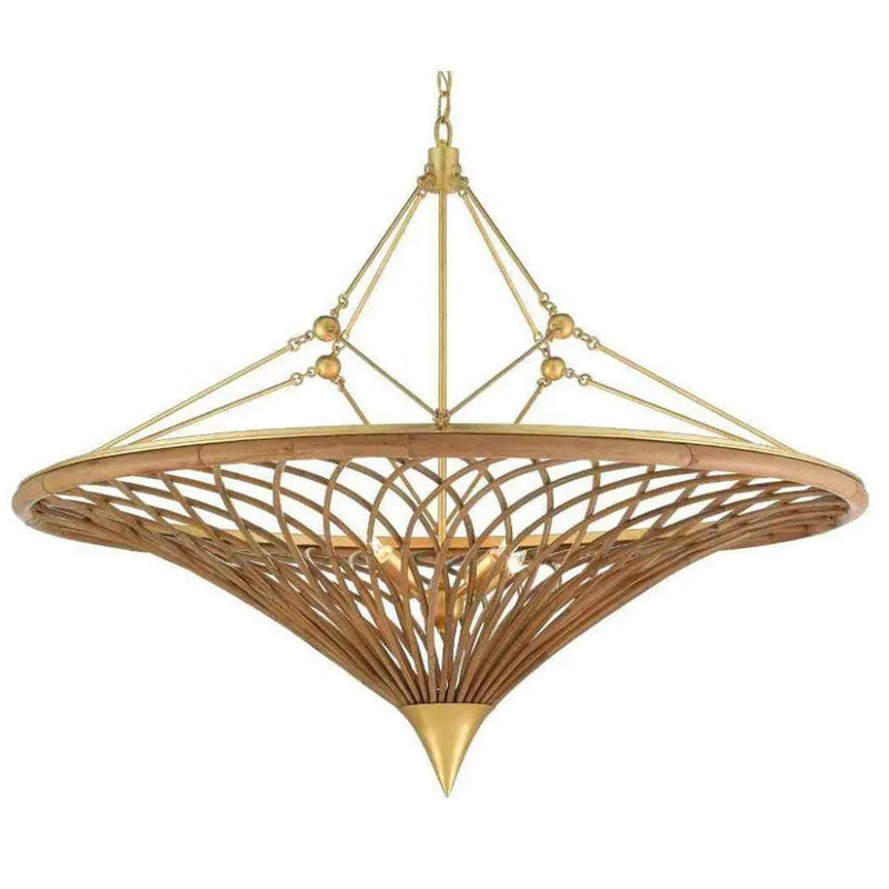 Working with natural materials like rattan is a strong suit of our artisans, who've taken the reeds and woven them into a work of art in our Gaborone Chandelier. The frame is made of wrought iron in a contemporary gold leaf finish. The hanging hardware on this natural rattan chandelier and the pointed cap at its bottom-most point add to the warmth of this lovely fixture. Adjustable from 46.5" to 113" with use of included chain/rod kit/cable. If your space calls for a longer drop, additional chain/rods/cable is available for purchase.