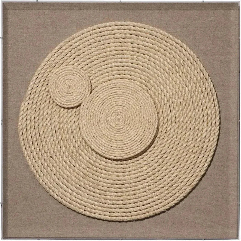 Add a touch of coastal charm to your home decor with our Coastal Style Jute Rope & Linen Barbados Small Wall Art. This unique piece is made with natural rope and a linen backing and features layered circles with twisted textures for added dimension. It is creatively designed to enhance a range of decor styles and is a must-have for any casual and comfortable home. This wall art combines coastal and contemporary elements, with its spiraling rope circles on a linen backing. The twisting texture and simple shapes, along with the neutral color palette, perfectly complement various decor styles. Handcrafted with natural materials and enclosed in an acrylic shadowbox, each piece is a one-of-a-kind work of art.