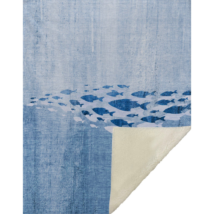 Experience a touch of the sea at home with this transitional rug. Featuring a school of fish against a soothing ombre backdrop, it brings a calming nautical vibe to any space. The rug is UV stabilized, making it suitable for both indoor and outdoor use. Its ultra-thin design includes a non-skid backing, making it convenient and safe without needing an extra rug pad. Made from 100% polyester, it is built to last and is easy to maintain, as it is machine-washable. This feature makes it ideal for homes with kids or pets, ensuring a clean and fresh look all year round.