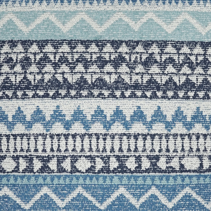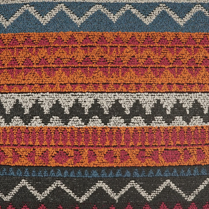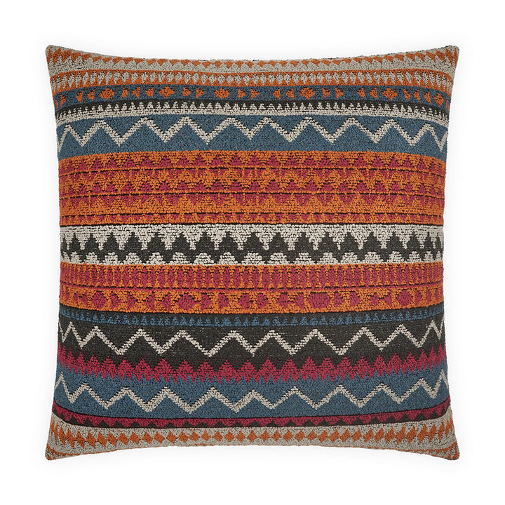 Add a splash of color and handcrafted charm to your home with the Naya Pillow. Made in California from a soft, durable polyester-cotton blend, each pillow is hand cut and sewn to order for a unique touch. Featuring striking chevron patterns, the Azure design showcases calming blues and navy, while the Carnival style adds a bold mix of orange, red, blue, black, and beige for a global-inspired look. The removable cover with a hidden zipper makes cleaning effortless, and the plush feather-and-down insert provides lasting comfort and support, blending artistry and cozy elegance.