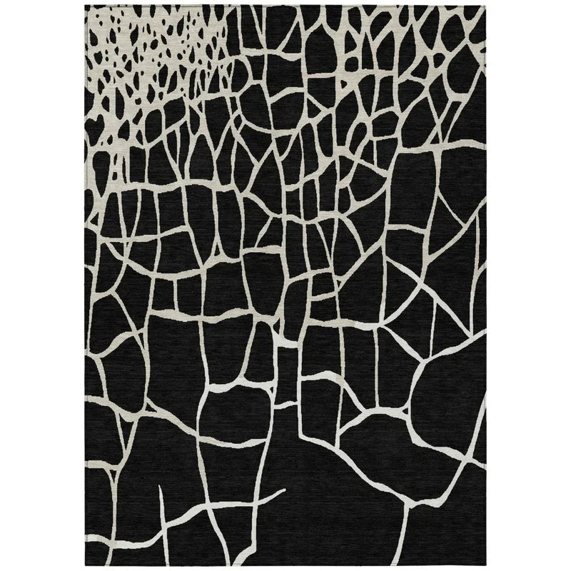 Nazira Black Washable Rug Perfect for Indoor-Outdoor Features: