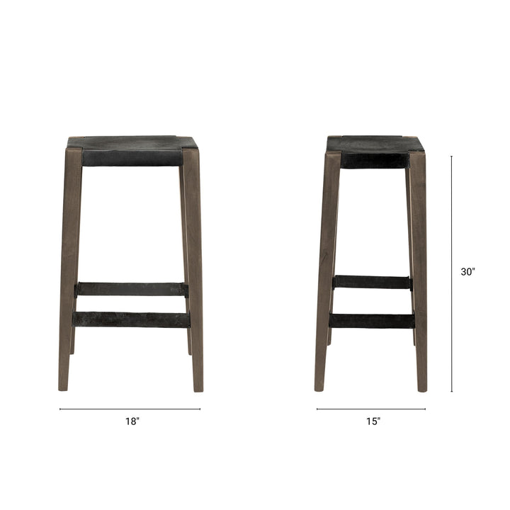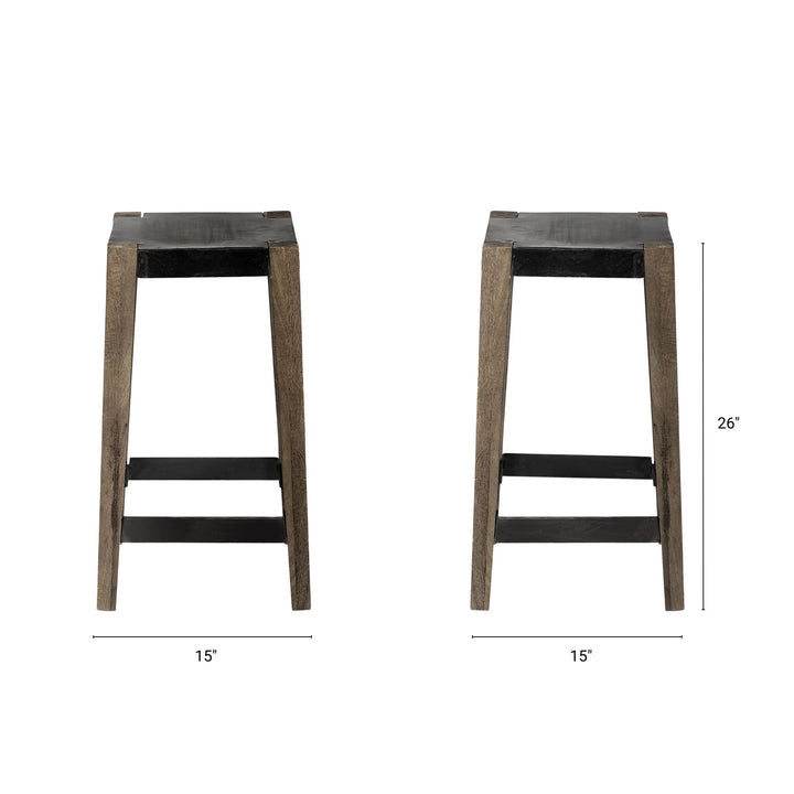 - Expertly crafted from solid wood and iron components, the Nell is a bar stool made to stand the test of time. The bar stool's flat iron seat is braced by a four-legged, solid mango wood frame that ensures exceptional stability and sturdiness.