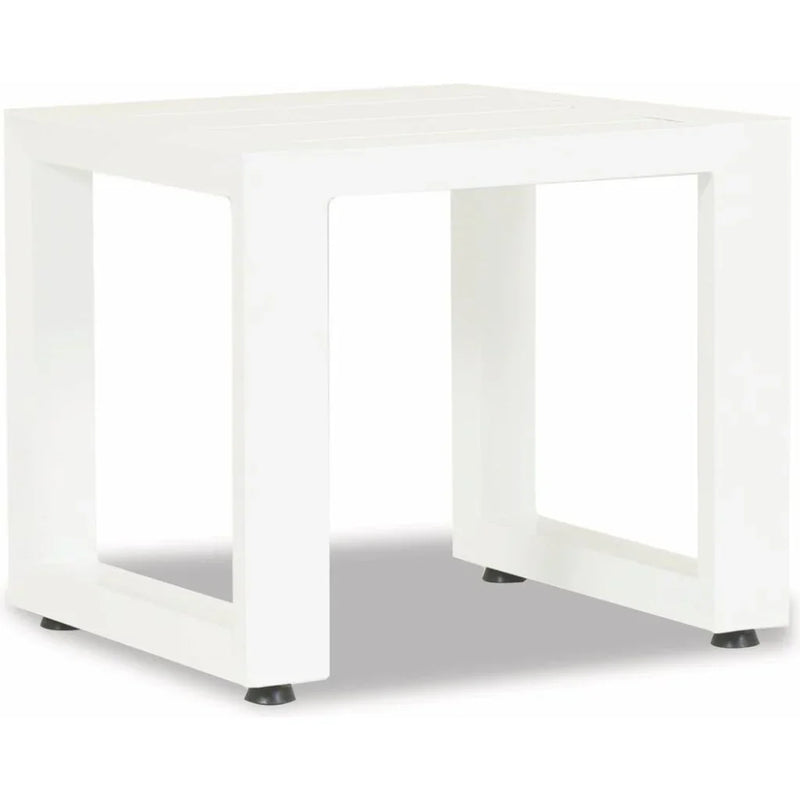 The Newport End Table offers a blend of modern and industrial styles, making it a versatile piece for any room. Its minimalist design features a slatted table top and a linear frame, crafted from powder-coated aluminum in a Satin White finish. This end table is not only stylish but also practical, proving to be a great addition to any home. Its compact size makes it suitable for both indoor and outdoor spaces, adding a touch of elegance without occupying much space.