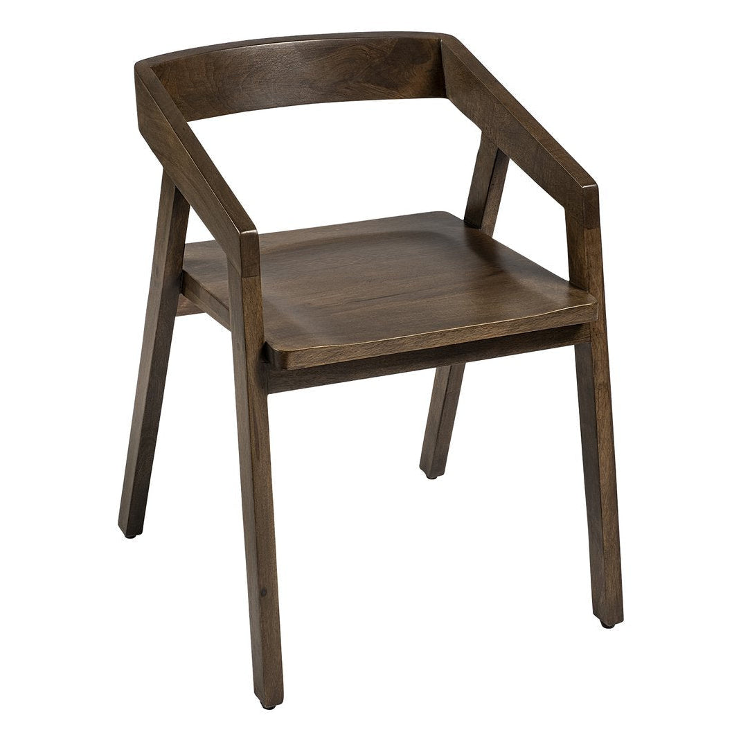 Solid wood gives the Nicholas Onyx Brown Dining Chair its sturdy appeal. This armless chair, made from premium Indian mango wood, is unupholstered and perfectly pairs with modern dining tables. Its open back design and square-shaped seat sit on a sleek, four-legged base. The smooth, medium brown finish highlights the wood's natural grain, making it a standout in woodlands or lakeside-inspired spaces. This chair requires no assembly, so it's ready to use right out of the box. Its contemporary look and durable construction mean you can enjoy both style and longevity in your dining area.