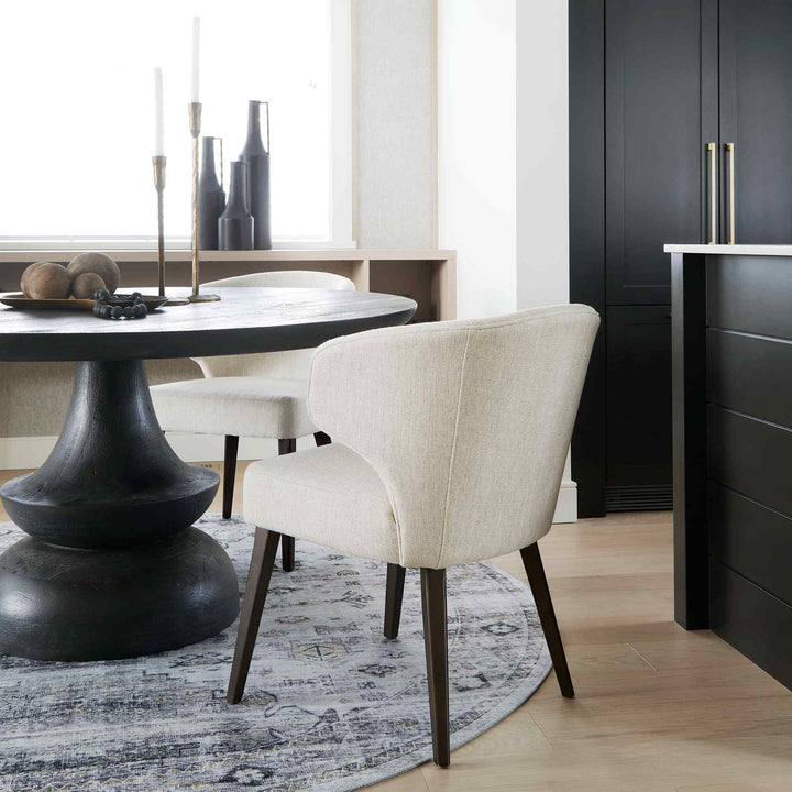 The Niles Dining Chair offers a blend of classic design and modern comfort. Featuring faux leather and fabric seat, it provides a vintage look while being durable and easy to maintain. The medium brown beech legs bring natural texture and strength to the chair, ensuring it stands strong over time. Its sculpted wingback offers wraparound comfort, making it perfect for long dining experiences. The chair's versatile style fits well in dining rooms, offices, or as an accent piece. With plush padding and a deep seat, it promises comfort from morning to night. Plus, it's ready to use right out of the box, with no assembly needed.