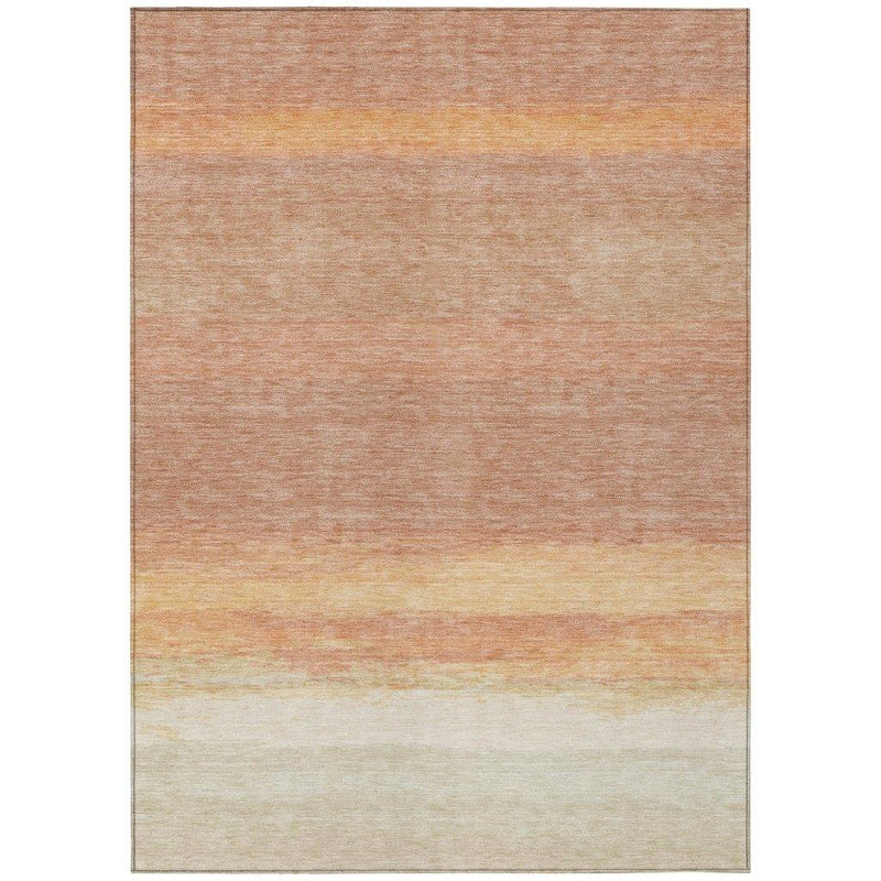 The sleek stripe pattern of the Noe Orange Washable Rug brings a touch of refinement to any transitional space. Made from durable polyester, this rug combines elegance with functionality. Its softly colored bands add a modern touch that can enhance any room, whether used indoors or out. The UV-stabilized fibers ensure that the vibrant orange hue remains bright, even when exposed to sunlight, making it ideal for patios and living rooms alike. Designed to be family and pet-friendly, this rug is both practical and stylish.