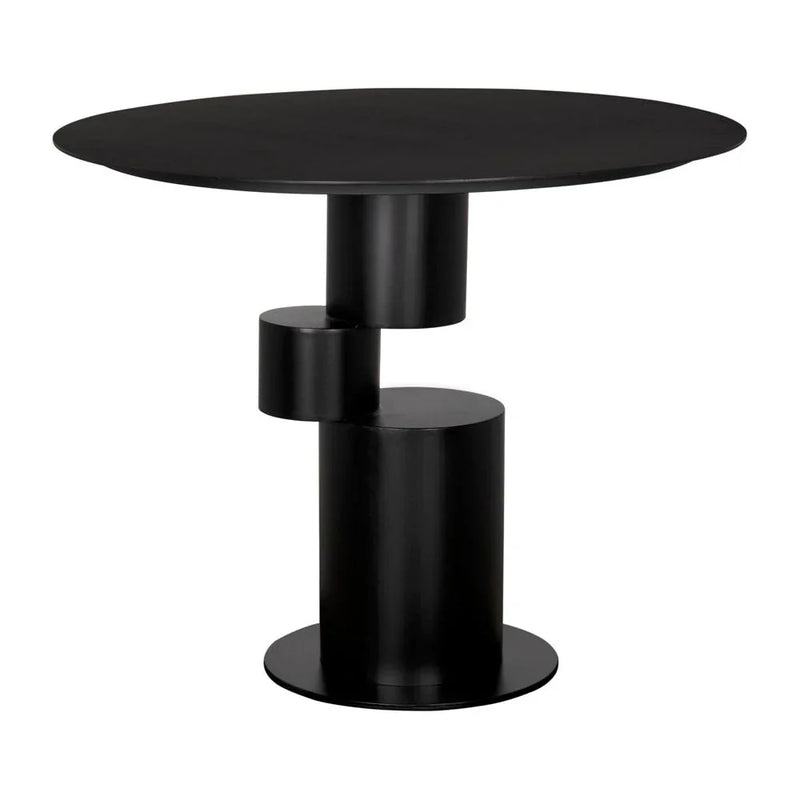 The Nola Metal Table in Matte Black is a perfect blend of style and durability, making it an ideal choice for both modern and industrial spaces. Crafted from industrial steel, this table stands out with its robust construction, ensuring long-lasting use. Its sleek, matte black finish adds a touch of elegance while maintaining a versatile look that can complement various decor styles. Whether placed in a dining room, office, or living space, this table provides a functional yet stylish centerpiece. With its round table top and cylindrical base, the Nola Metal Table offers a contemporary appeal that fits seamlessly into any room layout.