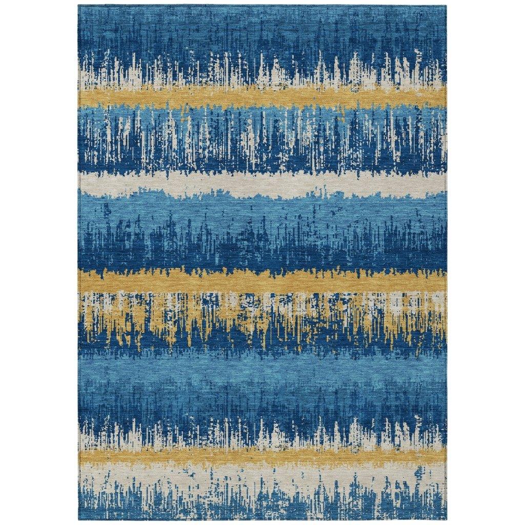 The Nyelle Navy Washable Rug brings a touch of modern sophistication to any home with its sleek horizontal stripes and subtle drip effects. Designed to seamlessly integrate into various spaces, this rug enhances your decor with its versatile design. Built to last, it is perfect for both indoor and outdoor settings, thanks to its UV-stabilized material. The ultra-thin profile adds convenience, making it easy to handle and maintain. Families with pets will find this rug particularly appealing due to its machine-washable material and pet-friendly quality, offering both style and practicality.