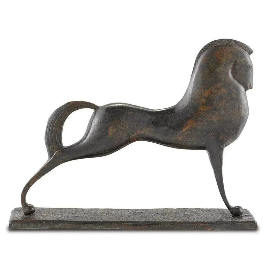 Antique Green Assyrian Bronze Horse - LOOMLAN - Currey & Co - Statues & Sculptures