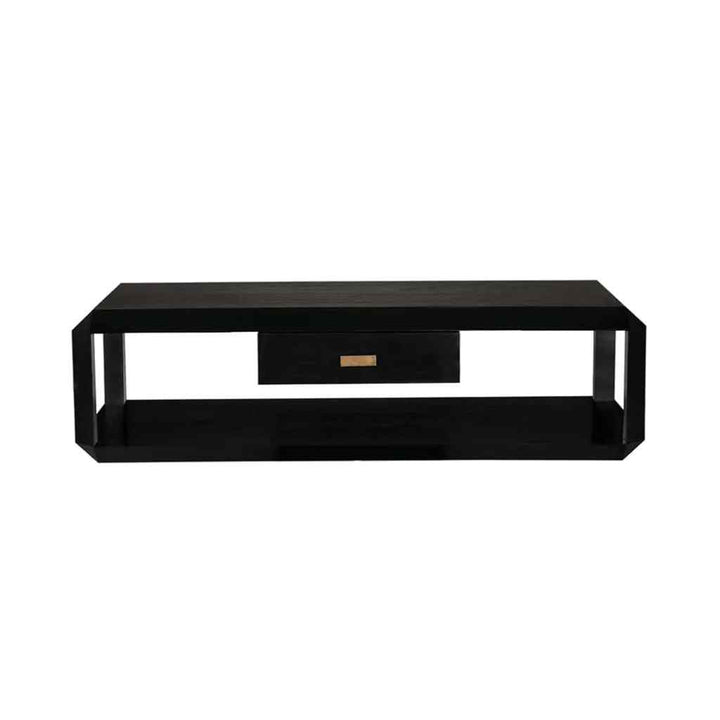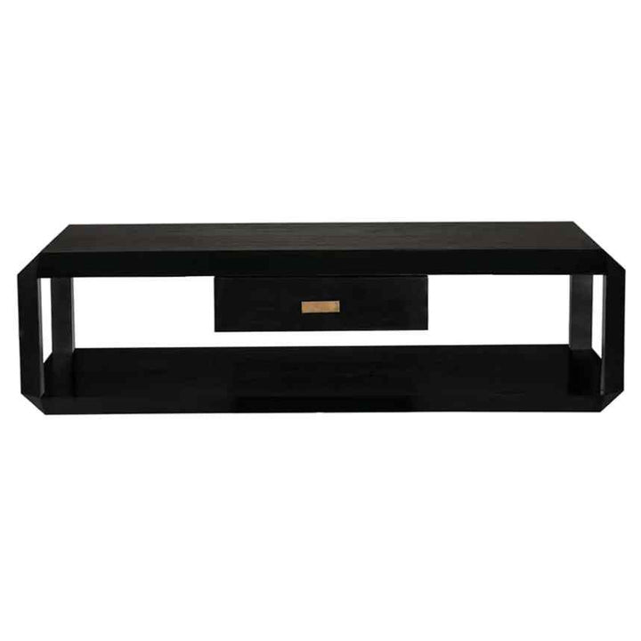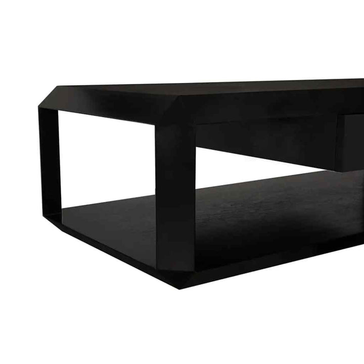 Bold and timeless, the Obtuse Coffee Table combines refined craftsmanship with modern utility. Made from mahogany and finished in a deep Hand Rubbed Black, it showcases clean lines and an angular shape that stands out without overpowering your room. This coffee table features two integrated drawers with subtle brass pulls, offering hidden storage for your living space. The design makes it both practical and striking, perfect for those who appreciate style and functionality. Its rich color and quality materials add a touch of elegance to any setting, making it an ideal centerpiece for your living area.
