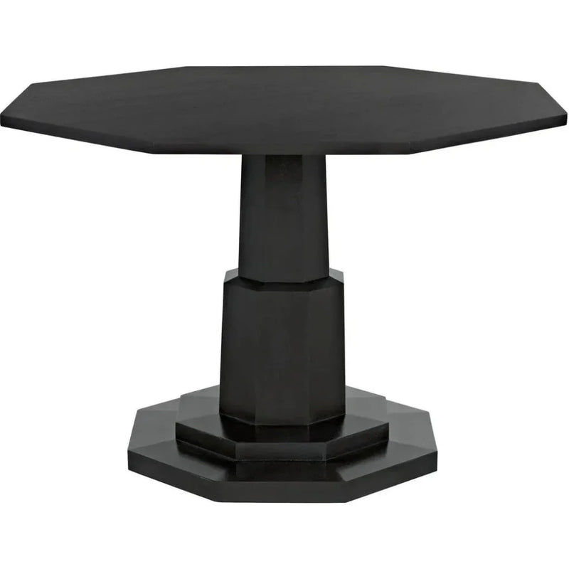 Elevate your dining room's aesthetic with our Octagon Wood Black Geometric Dining Table. Made of mahogany, its octagon shape symbolizes the union of heaven and earth, bringing a touch of spirituality to your home. Embrace elegance and transform your dining space into a tranquil haven with this beautiful and unique centerpiece. The octagon is a deeply symbolic shape, representing the point where heaven (circle) meets earth (square). This mahogany dining table embraces the concept, providing both a note of spirituality and a strikingly beautiful centerpiece for your dining room. Transform your dining room into a tranquil space with a touch of elegance.