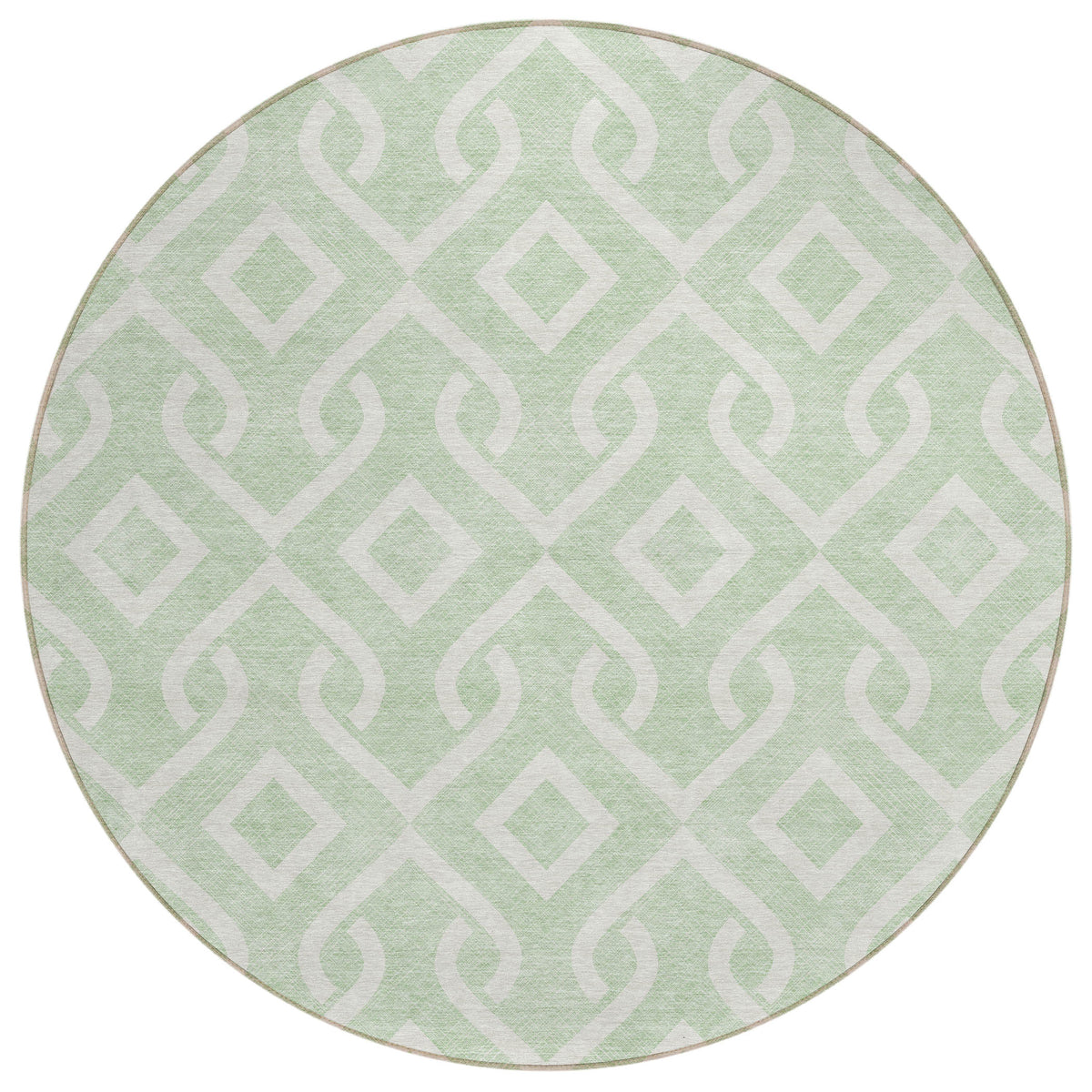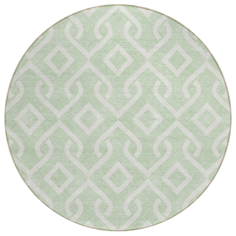 Transform your space with the Offset Stripes Mint Washable Indoor-Outdoor Rug. This rug blends modern and traditional styles with its unique geometric design, featuring broken medallion pieces and anchoring diamonds. Made from 100% polyester, it is built to last, whether used indoors or outdoors, thanks to its UV-stabilized finish. The ultra-thin design with non-skid backing ensures safety, making additional rug pads unnecessary. Its machine-washable feature is perfect for families and pet owners, offering easy maintenance and long-lasting beauty. This rug is ideal for covered outdoor areas or low-sunlight spaces, ensuring vibrant colors over time.