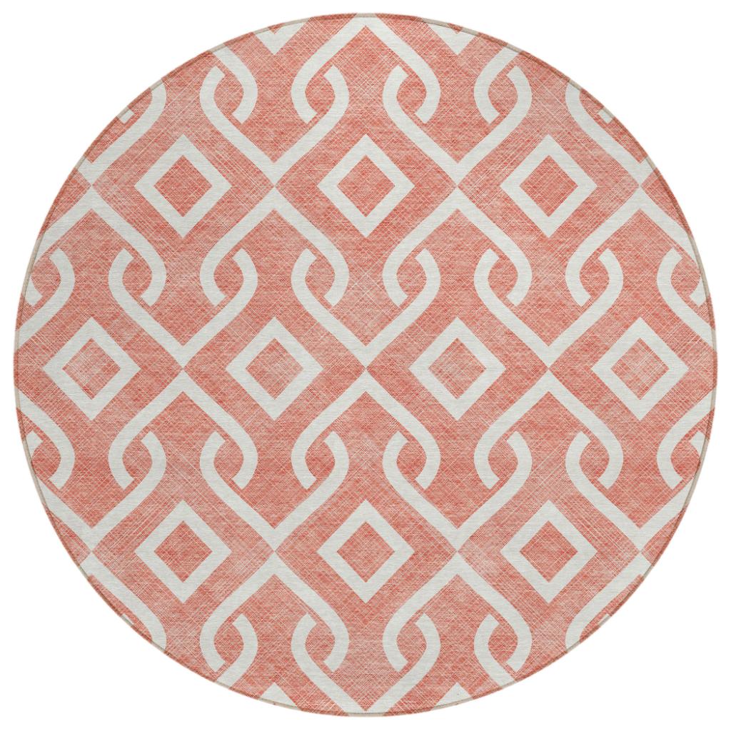 The Offset Stripes Salmon Washable Indoor-Outdoor Rug brings your space to life with its striking design. It features broken medallion pieces and anchoring diamonds, making it a standout addition to both modern and traditional settings. This rug is perfect for indoor and outdoor use, thanks to its UV-stabilized material that resists fading. Made from 100% polyester, it boasts a built-in non-skid backing, so you won't need an extra rug pad. Plus, the rug is machine washable, offering convenience for busy families and pet owners. Its ultra-thin design ensures quick drying after rain or cleaning.