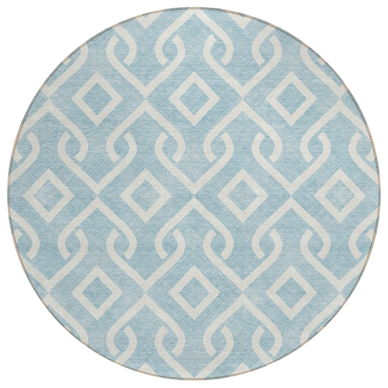This stylish rug brings a touch of elegance to any space with its geometric design featuring broken medallion pieces and anchoring diamonds. Its versatile look fits both modern and traditional settings, making it a great addition to any home. Designed for both indoor and outdoor use, the rug is UV-stabilized to help maintain its color over time. The ultra-thin construction includes a built-in non-skid backing, ensuring it stays in place without needing an extra pad. Made from 100% polyester, this rug is machine washable, making it perfect for households with kids and pets. Enjoy the ease of maintenance and the timeless appeal it adds to your decor.