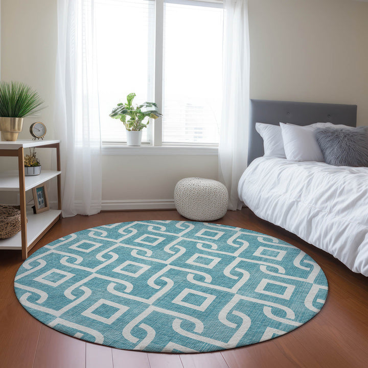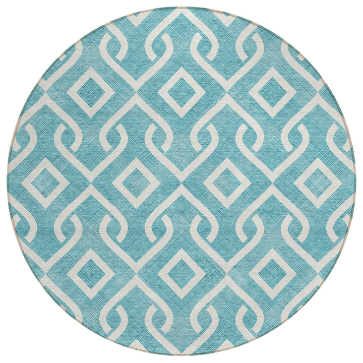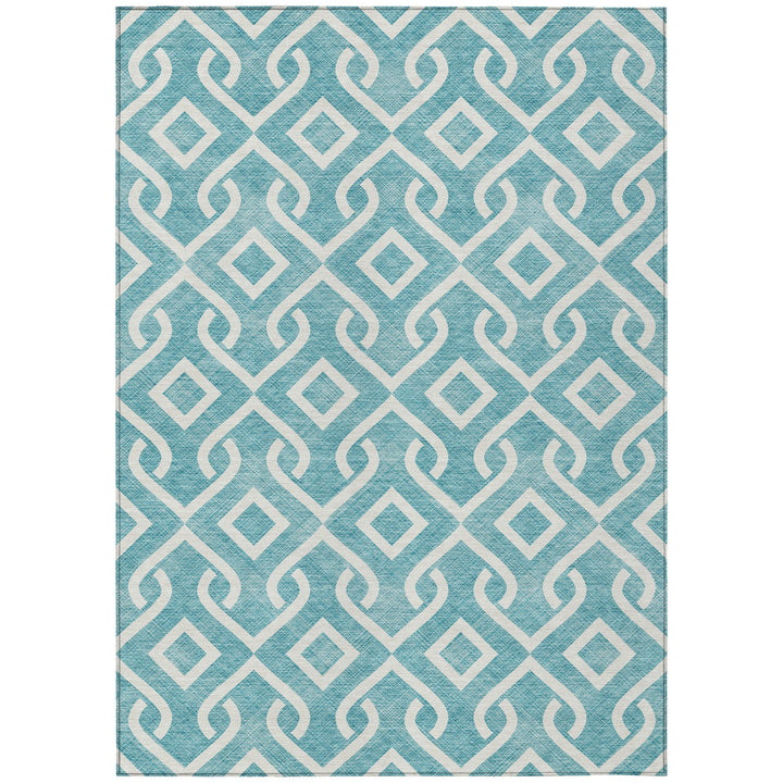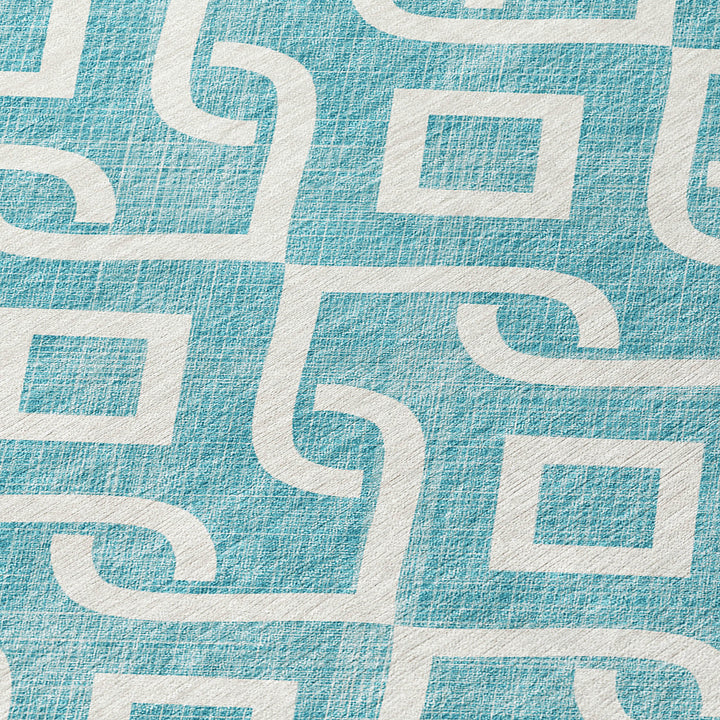 Add a touch of elegance to your space with this beautiful teal rug, featuring an eye-catching design of broken medallions and anchoring diamonds. Perfectly suited for both modern and traditional styles, its UV-stabilized material makes it ideal for indoor and outdoor use. Made from 100% polyester, this rug is designed to last, even in areas with mild sunlight exposure. Its ultra-thin profile allows for quick drying, and the built-in non-skid backing ensures it stays in place without the need for an extra rug pad. Easy to clean, the rug is machine washable, making it a great choice for busy households.