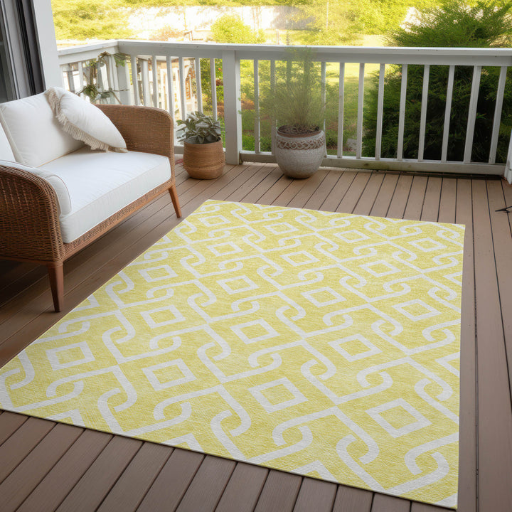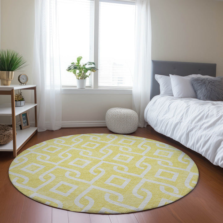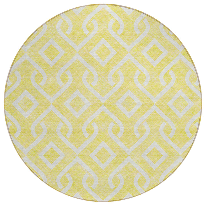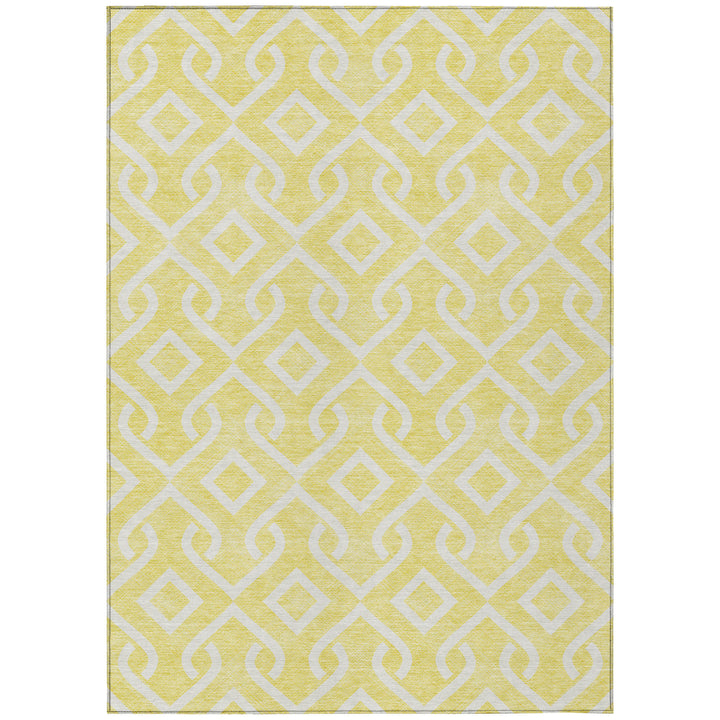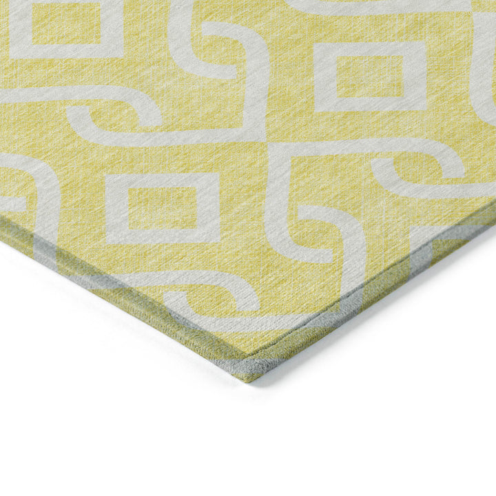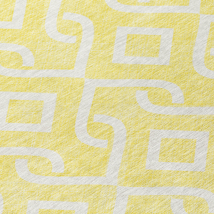 The Offset Stripes Yellow Washable Rug is a stylish addition to any space, bringing both beauty and practicality. Its geometric design, featuring broken medallion pieces and anchoring diamonds, fits seamlessly into modern and traditional settings. Made from 100% polyester, this rug is UV-stabilized, making it perfect for both indoor and outdoor use. The ultra-thin design with a non-skid backing ensures stability, eliminating the need for an extra rug pad. It's easy to clean, being machine-washable, which is ideal for families and pet owners. This rug is a great choice for those seeking a blend of style and functionality.