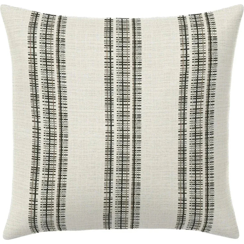 Enhance your outdoor space with the perfect blend of style and durability with the Olio Birch Outdoor Pillow. Crafted with care in the USA, this pillow combines form and function seamlessly. The cream background with vertical black stripes offers a minimalist yet sophisticated design that complements any outdoor setting. The woven texture adds a touch of elegance, making it a versatile addition to your patio or garden. Each pillow is handmade, ensuring a unique touch that sets it apart from standard outdoor decor.