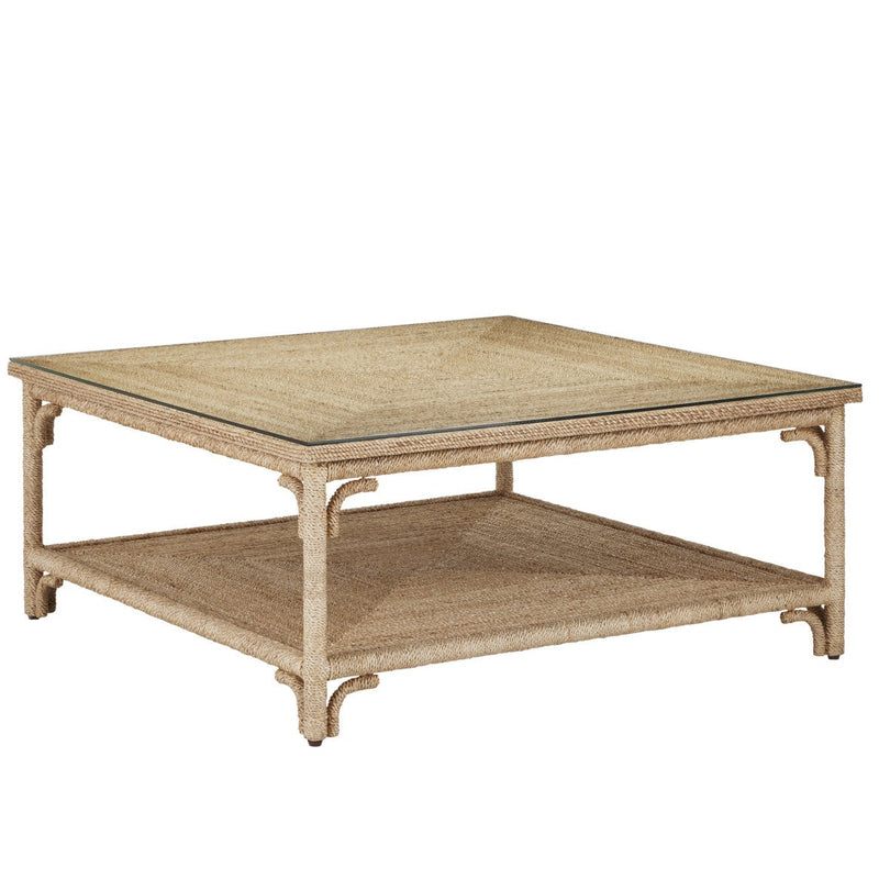 With the earthy feel of rattan and wicker, the Olisa Rope Cocktail Table is covered in braided abaca rope to bring a natural elegance to a room. The dexterity required to wrap a piece of furniture so skillfully makes this tan coffee table special. The glass top will protect the absorbent material from any smudges, drips, or splashes that inadvertently come with everyday life. The bottom shelf is perfect for stashing newspapers, books, or hobby-related materials.