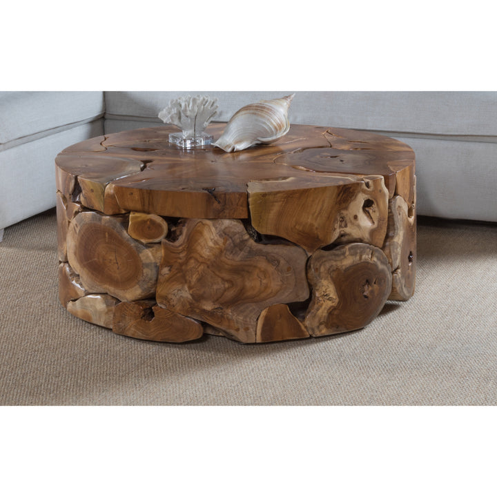 The Organics Natural Round Cocktail Table showcases the raw elegance of solid teak, featuring organic roots and branches preserved by skilled artisans. Each table is one of a kind, with natural grooves, knots, and textures that highlight the wood’s beauty and tell a story of nature’s creativity. Its rich brown finish blends effortlessly with various interiors, offering a rustic yet refined focal point for your living space.