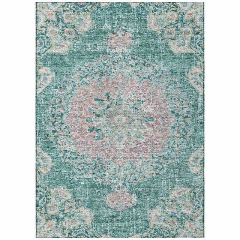 Ornella Teal Washable Rug With Non-Skid Backing Features: