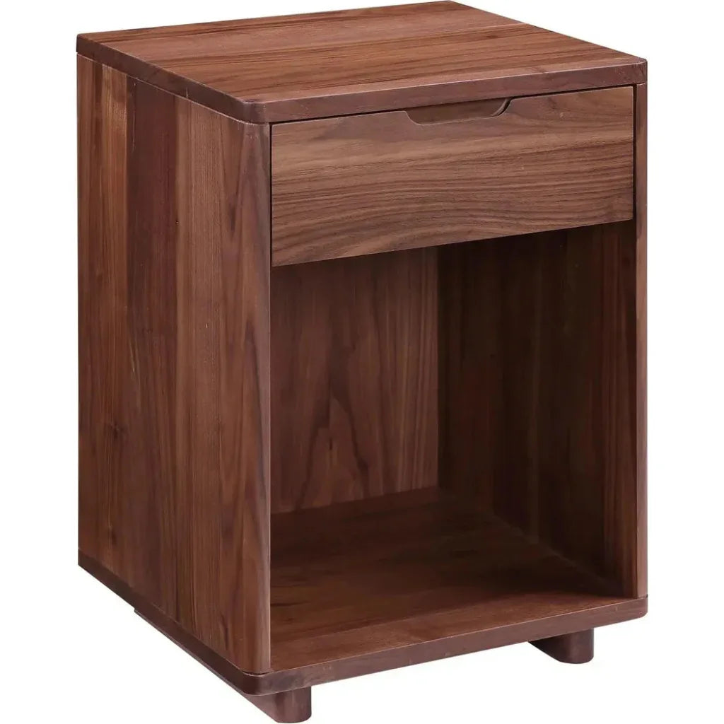 Osamu Solid Walnut Wood Brown Nightstand With One Drawer Features:
