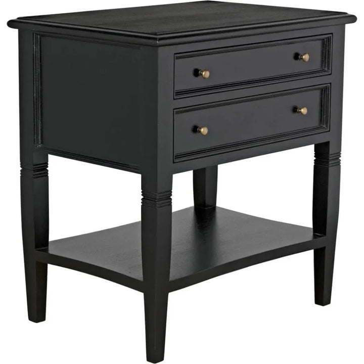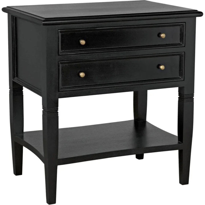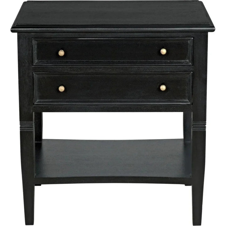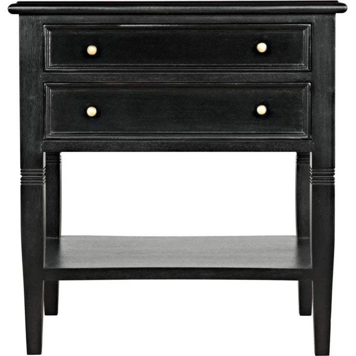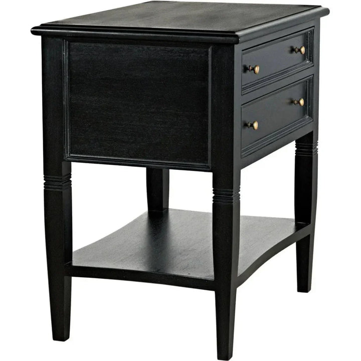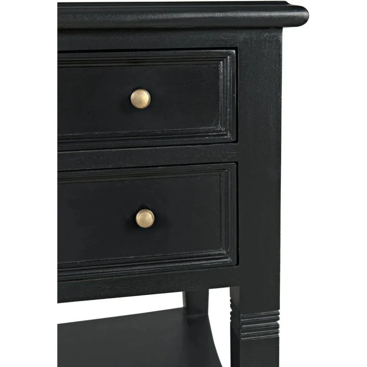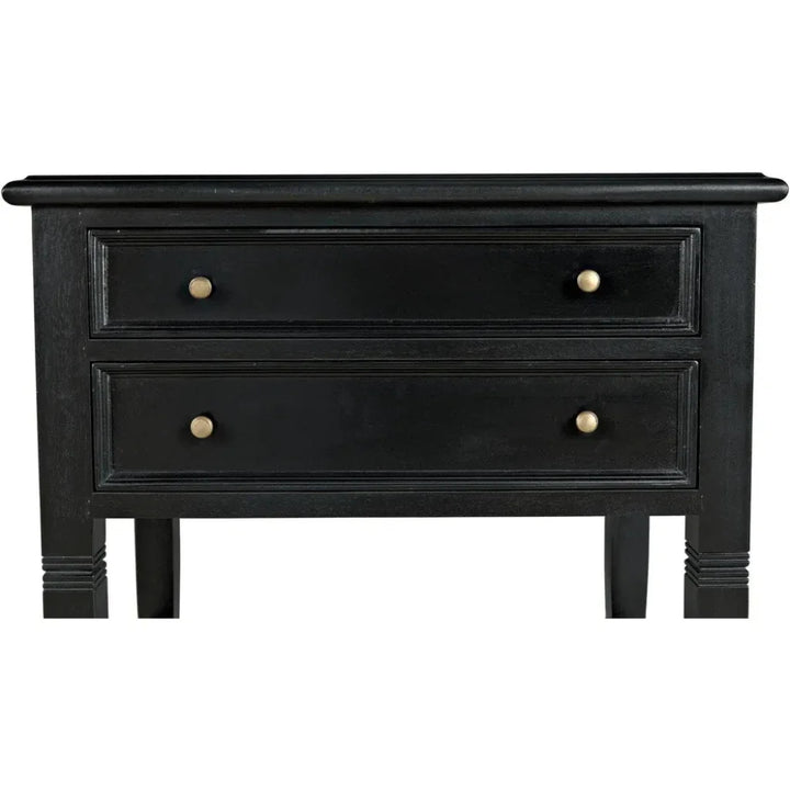 Expertly crafted from solid mahogany, the Oxford 2-Drawer Rectangular Side Table adds timeless sophistication to any room. Featuring decorative carvings, tapered legs, and two slim drawers, this artisan-made piece offers both functionality and elegance. Available in three finishes—Hand Rubbed Black, Weathered Brown, and White Wash—each variant is designed to highlight the natural grain of the wood. With a blend of traditional craftsmanship and practical storage, the Oxford side table makes a refined statement in any setting.