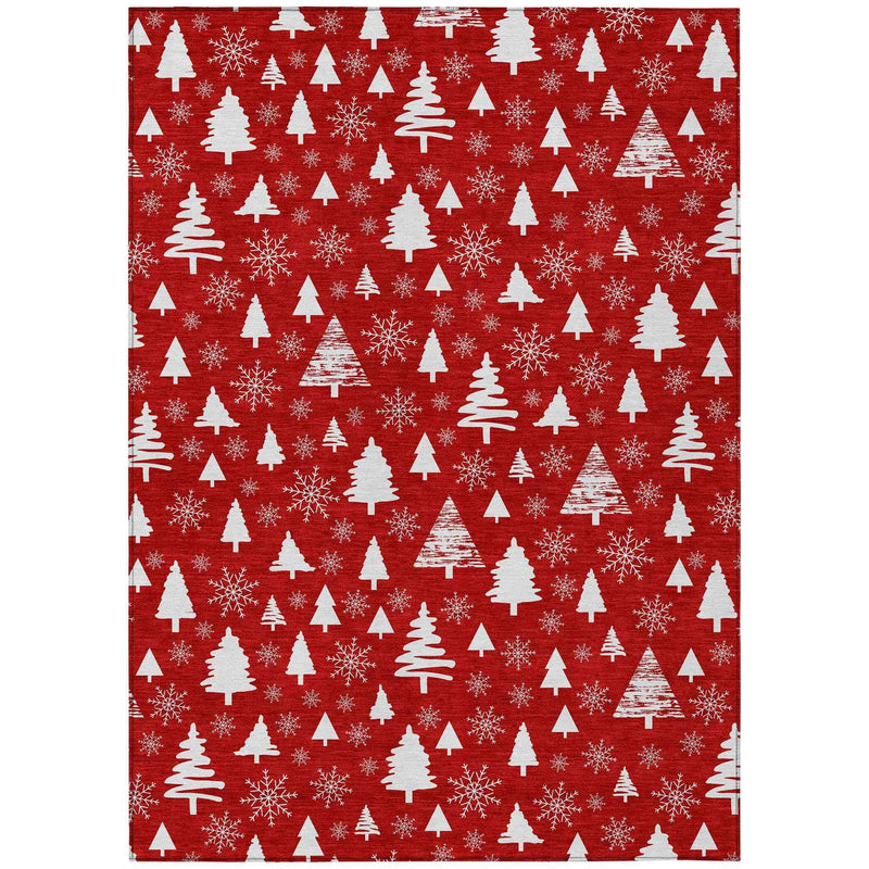 Featuring small trees and snowflakes, this red rug adds a festive touch to any space, making it ideal for the holiday season. Its transitional style seamlessly blends with both modern and traditional settings, offering a warm holiday atmosphere without overpowering your decor. Perfectly suited for both indoor and outdoor use, this rug is UV-stabilized to ensure it retains its vibrant color, even in sunny areas. Its ultra-thin construction allows for easy cleaning and maintenance, making it a practical choice for busy homes.