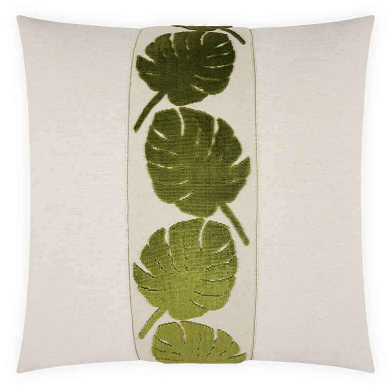 - Design: Square pillow, green leaf pattern, vertical stripe, botanical design