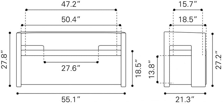 - Overall Dimensions (WxDxH): 54.3" x 20.9" x 27.6"