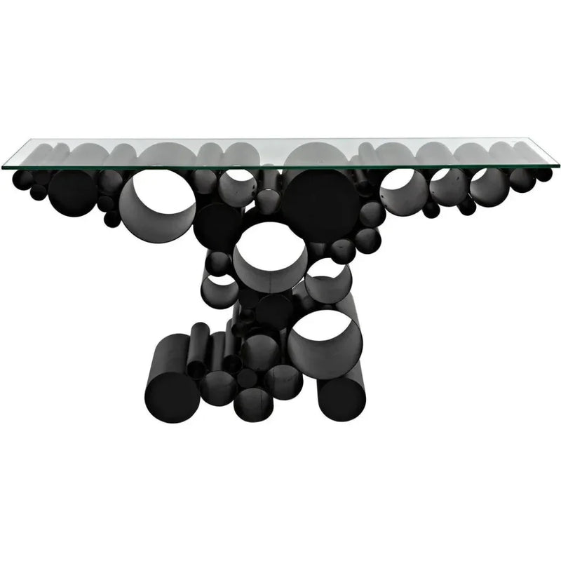 Paradox Console, Black Steel with Glass Top Features: