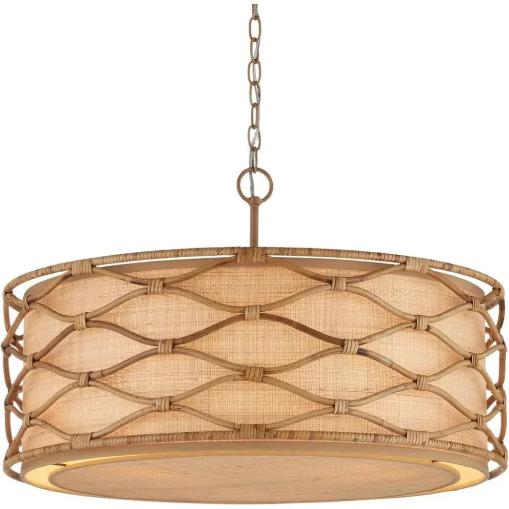 Partita Iron and Rattan Beige Pendant - LOOMLAN - Currey & Co - Pendants