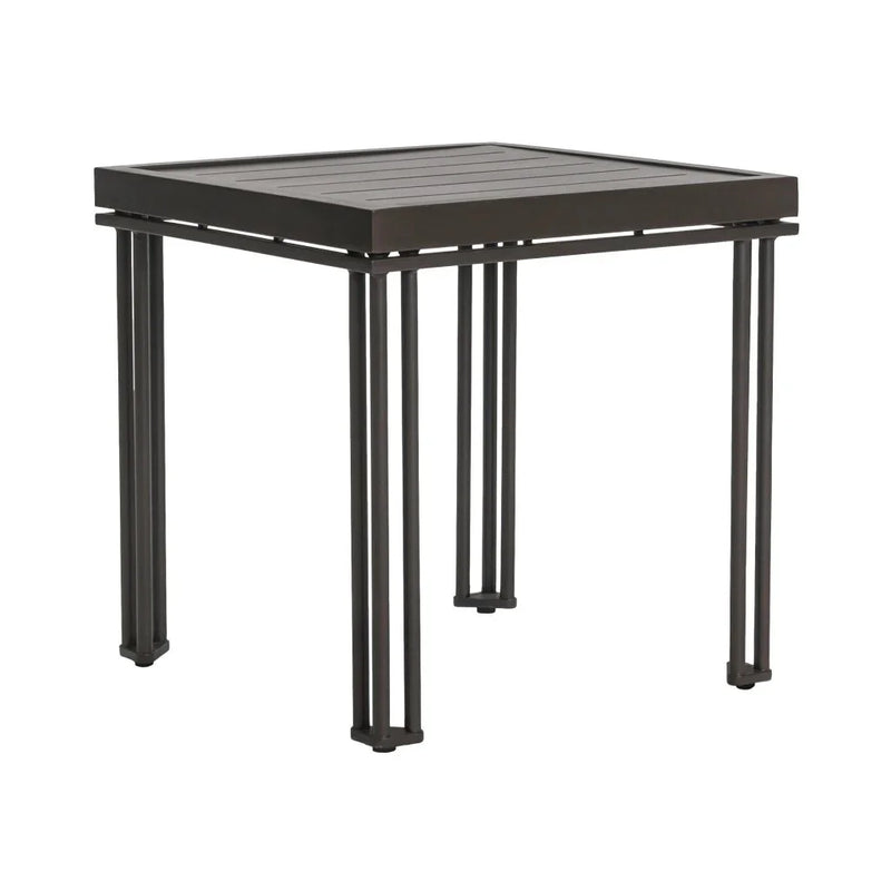 Crafted from powder-coated aluminum with a smooth charcoal satin finish, this square table features a slatted top and four legs with vertical slats. The minimalist design of the Patinero Side Table makes it a versatile addition to any indoor or outdoor space. Its heavy-duty aluminum frame ensures durability in harsh conditions, while precision fabrication and seamless welding highlight its quality craftsmanship. The inclusion of eco-conscious materials, such as recyclable Quick-Dry Foam and Agora solution-dyed acrylic fabrics, underscores its commitment to sustainability. This piece is ideal for those who appreciate the natural patina of soulful materials and the timeless appeal of well-crafted furniture.
