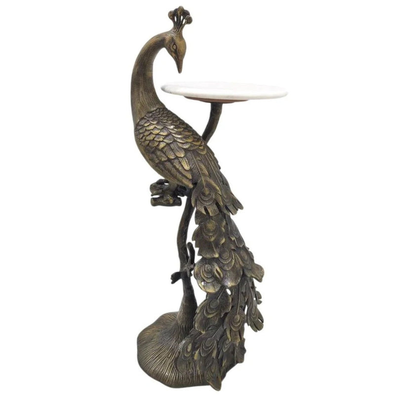 The Peacock Round Accent Table is a perfect blend of style and functionality, making it an ideal addition to any living space. Crafted from sturdy metal with a sleek metallic brown and gold finish, this table adds a touch of elegance to your home decor. Its compact design allows it to fit seamlessly into any room, providing a convenient surface for your decorative items, books, or beverages. The round shape of the table ensures it complements various furniture styles, making it a versatile choice for any setting. This accent table stands out with its durable construction, ensuring it remains a staple in your home for years to come.