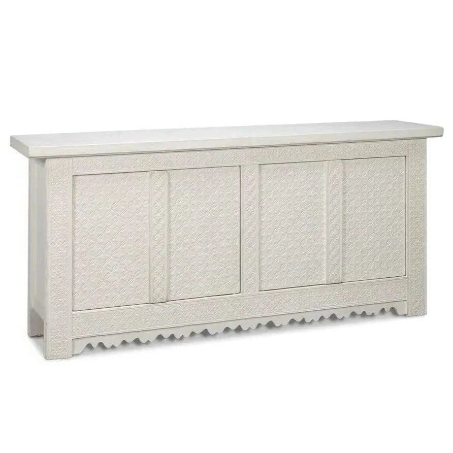 Experience the vintage charm of ancient Persia with the Persian Sideboard in Antique White. Made from high-quality pine and adorned with an elegant antique white finish, this eclectic masterpiece is perfect for storing heirlooms or showcasing decor pieces. Add a touch of grandeur to your living room with this stunning sideboard.