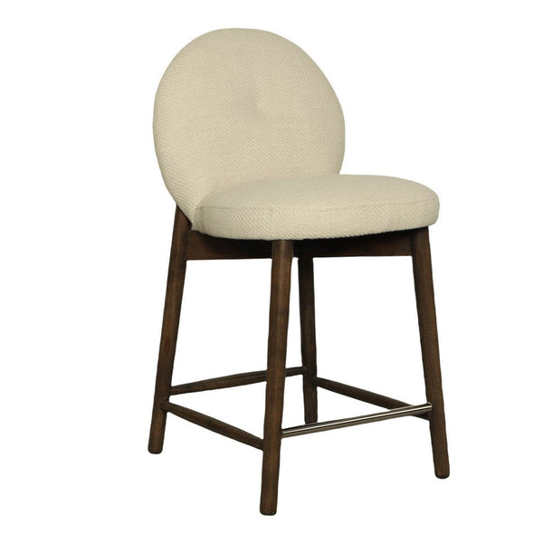 Rubberwood gives this petite counter stool its sturdy feel, making it a reliable choice for your kitchen or bar area. Wrapped in 100% polyester with a crosshatch pebble cream texture, it offers a modern touch that fits right into contemporary spaces. The warm brown finish of the rubberwood frame adds a touch of elegance and ensures long-lasting use. Plus, there's a metal ledge on the footrest to keep scratches at bay, so you won’t have to worry about wear and tear. It's a practical and stylish addition that combines comfort with durability, perfect for daily use.