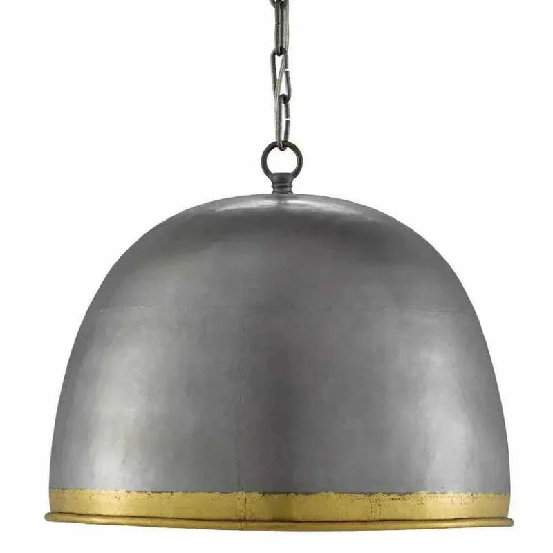 Our Matute Pendant is an edgy composition made of iron with a surprising mix of finishes. Though the predominant finish on the dome-shaped shade is pewter, we dressed the gray pendant up just a bit by adding a ring in a brass finish around the bottom edge. Adjustable from 19.75" to 89" with use of included chain/rod kit/cable. If your space calls for a longer drop, additional chain/rods/cable is available for purchase.