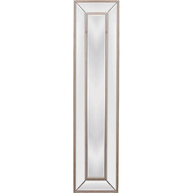 Adorned with a scrubbed pine finish and beveled frame, this piece adds a touch of simplicity and elegance to any abode. Whether you're near the water or craving natural decor, this wood mirror is the perfect accent for any room in your home. Live boldly and elevate your interior design with this versatile companion.