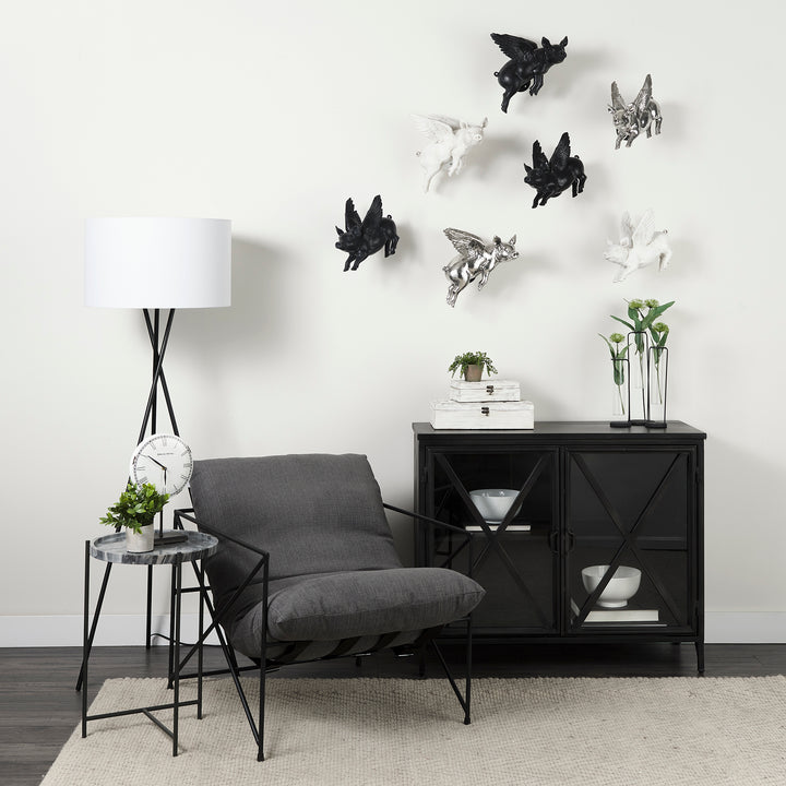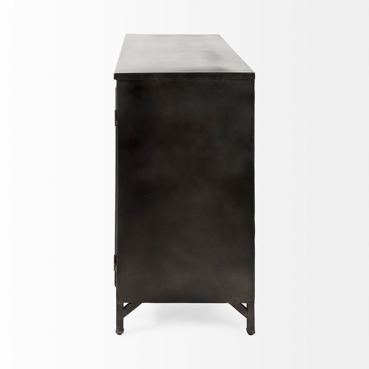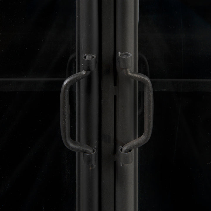 - Designed to suit the industrial and Farmhouse decor style, the Poppy's black metal finish gives it an industrial feel which is complemented by its glass doors