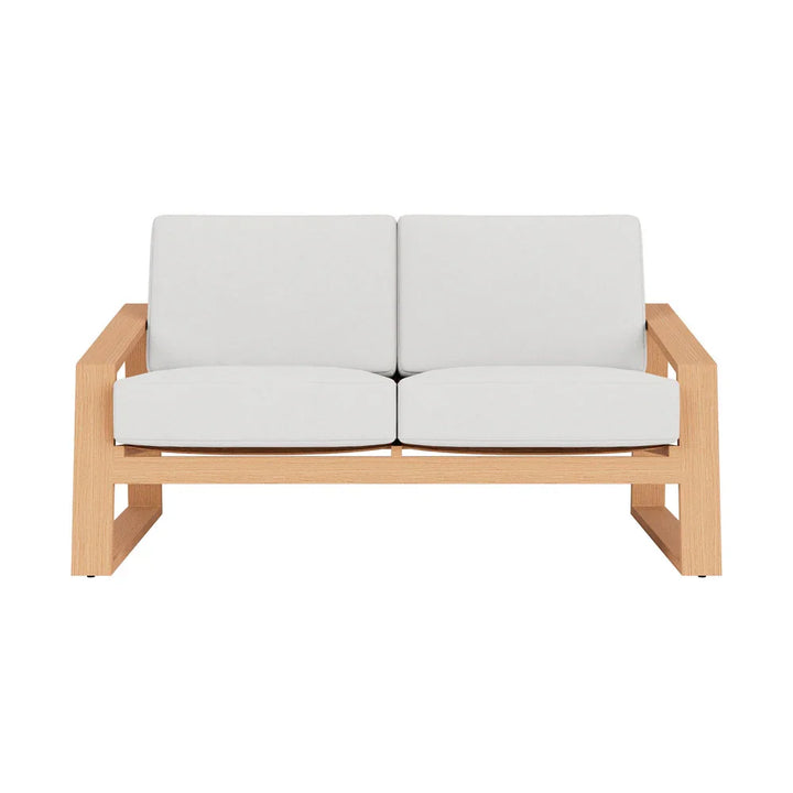 The Pursuit Outdoor Loveseat is crafted to bring a touch of comfort and style to any space. Designed by Peter Homestead, this loveseat is part of the Pursuit Collection, known for its casual and relaxed vibe. It features a wide, bold stance and a low profile that offers surprising ergonomic comfort. The frame is made from powder-coated all-aluminum, ensuring durability and strength for both indoor and outdoor use. Its faux-wood finish mimics the warm look of natural teak, providing a sophisticated appearance without the need for ongoing maintenance. With its modern geometric design and angular armrests, this loveseat is a perfect blend of function and style.