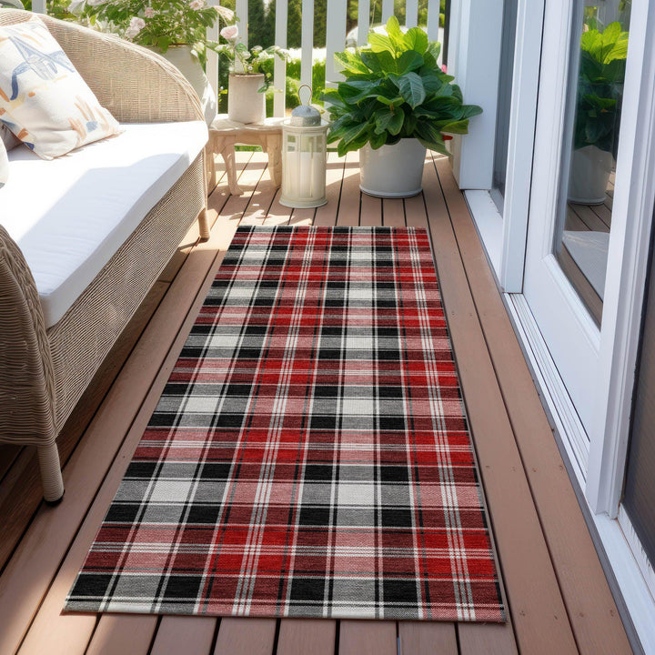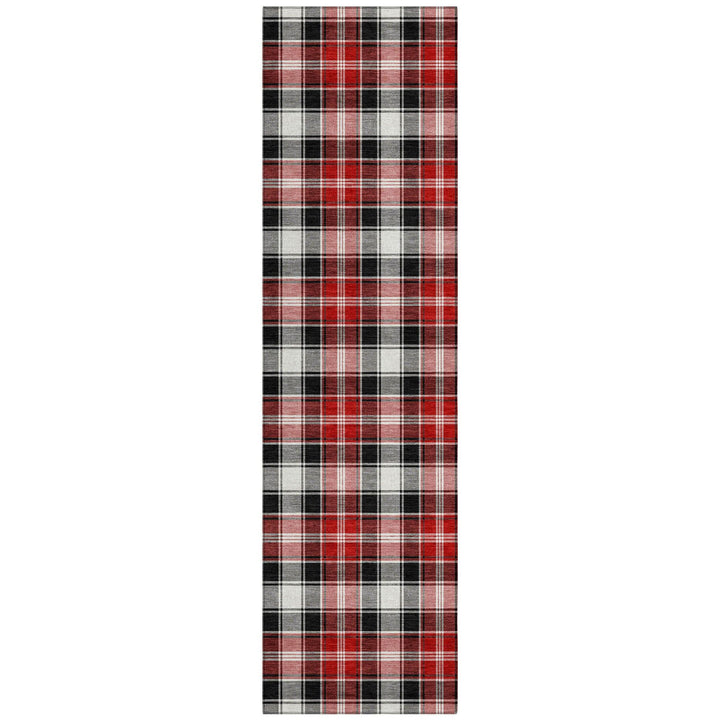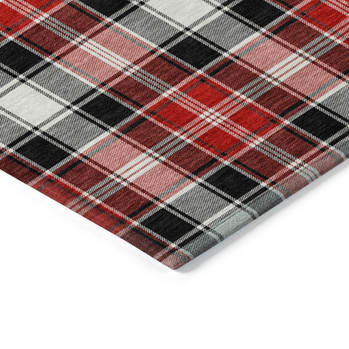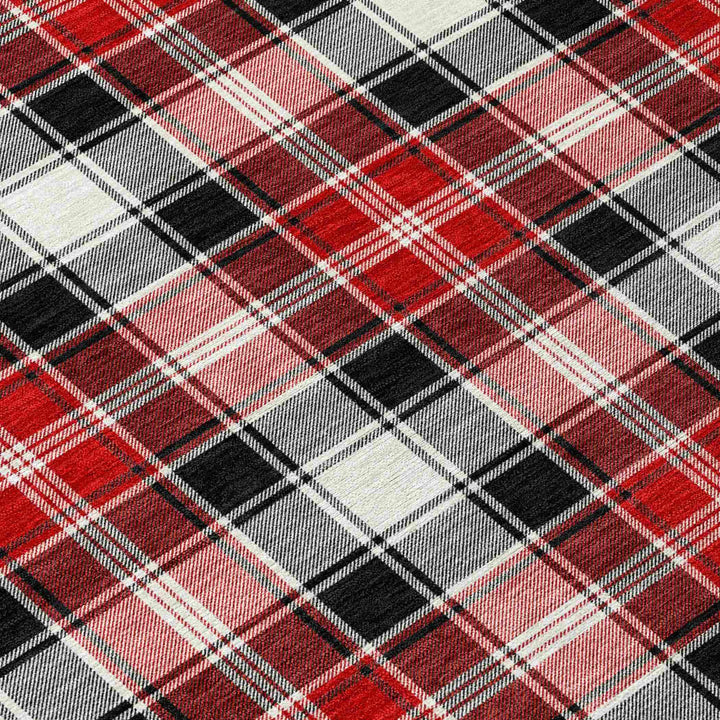 Bold plaid stripes in vibrant colors bring a touch of classic Christmas charm to any space. The Quaanor Black Washable Rug offers a cozy atmosphere with its clean, crisp lines that blend seamlessly into both contemporary and traditional interiors. Its transitional style ensures that it's a versatile addition to any home décor. Designed for indoor and outdoor use, this rug is both stylish and functional, making it ideal for busy households that demand both beauty and durability.