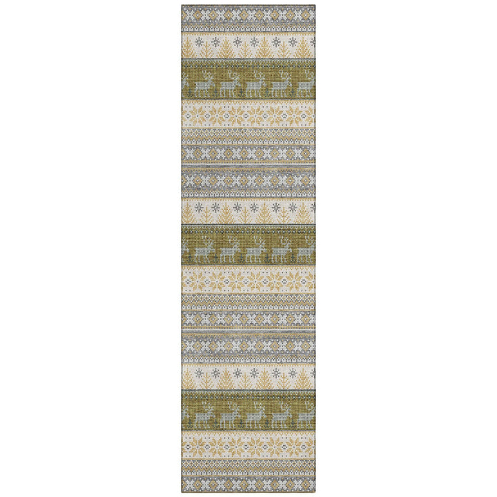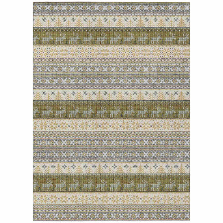 The Quaara Gray Washable Indoor-Outdoor Rug brings a touch of festive charm to any space with its Christmas sweater stripes featuring deer and snowflakes. This rug is perfect for adding a cozy, holiday feel to your room. Its intricate design not only adds texture but also a playful element to holiday décor. The rug's transitional style makes it a versatile choice, blending seamlessly with both modern and classic furnishings. Whether you're placing it indoors or outdoors, this rug is designed to withstand everyday use, making it ideal for busy households.