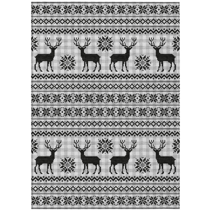 The festive plaid pattern of this rug, adorned with charming deer and snowflakes, brings a lively holiday spirit to any space. The playful mix of iconic Christmas symbols and cozy plaid creates a warm and inviting atmosphere, perfect for celebrating the season. It seamlessly enhances both modern and traditional décors, adding a touch of festive charm to your home. Crafted from durable polyester, this gray rug is designed for both indoor and outdoor use, making it a versatile addition to your décor.