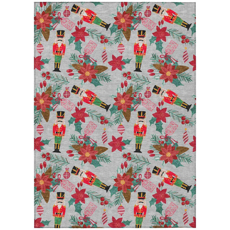 Nutcrackers, holly berries, and poinsettias blend seamlessly with snowflakes to bring a festive charm to any space. This Christmas-themed design adds depth and texture, making it perfect for holiday celebrations. Its transitional style effortlessly complements both modern and traditional décor. Whether you’re sprucing up your living room or adding warmth to your patio, the rug’s adaptable design makes it a versatile choice for any setting.