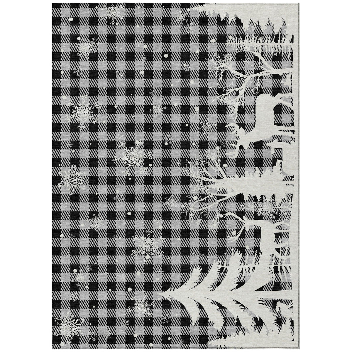The Quaora Gray Washable Rug brings a touch of holiday spirit into your home with its charming plaid background and festive deer with trees design. This unique pattern adds depth and character to any space, blending seamlessly in both modern and classic settings. Designed for versatility, this rug is perfect for both indoor and outdoor use. Its UV-stabilized construction ensures it remains vibrant even when exposed to sunlight, making it ideal for patios or living rooms alike. The rug is crafted from durable polyester, offering both style and practicality for busy households.