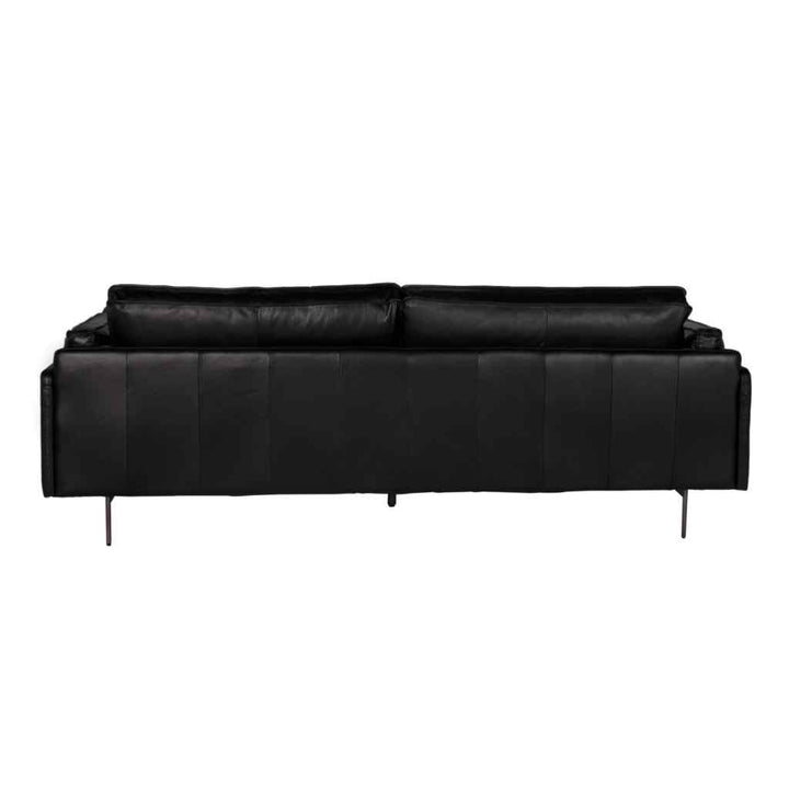 The Ray Sofa in Onyx Black Leather is a blend of elegance and durability. Its sleek design features a solid walnut frame, upholstered in smooth top-grain leather. This sofa offers a deep onyx black finish, bringing a touch of modern luxury to any living space. The iron accents add a hint of industrial style, making it both a stylish and sturdy choice. Ideal for those who appreciate timeless design and comfort, this sofa is not just a piece of furniture but a statement of sophistication. Experience the perfect mix of form and function with the Ray Sofa.