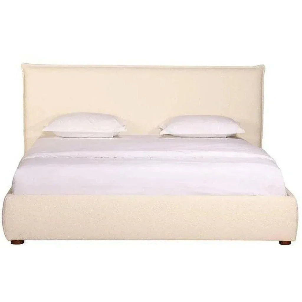 Just like its namesake, the Recharge bed is designed for comfortable, energizing, rejuvenation. A beautiful introduction of creamy boucle to your bedroom living space, the bed softly curved form is a serene style made simple. Poised and tranquil. This bed creates an incredibly soft space for mental calm and relaxation more than comfort, almost an emotion with its delicate nature, padded sides, and headboard, and subtly exposed dark wood post legs. Transform your bedroom into a sanctuary of tranquility with the Recharge bed. Its soft curves and creamy boucle fabric evoke a sense of serenity and elegance. Designed for ultimate comfort and relaxation, this bed is perfect for creating a peaceful space to recharge both the body and mind.