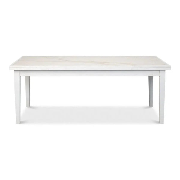 Elevate your dining experience with the sophisticated and spacious Rectangular Extension Dining Table in White. Its sleek Cortina White base and porcelain top add a touch of elegance to your decor, while the beechwood legs and veneer provide durability and style. With generous seating space, this table is both functional and attractive - a must-have for any dining room.