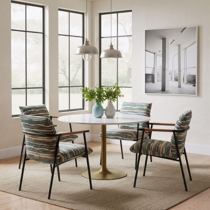The Reduga Dining Chair in Multicolor blends style and function, making it a smart choice for any dining area. Crafted with textured 100% polyester fabric and 100% polyurethane faux leather, it offers a comfortable seating experience. The powder-coated steel frame adds durability, ensuring the chair remains a reliable part of your home or hospitality space. Its modern design brings a touch of elegance and versatility, enhancing the look of any room. Whether for dining or working, this chair provides comfort and style in one neat package, making it an appealing addition to your furniture collection.